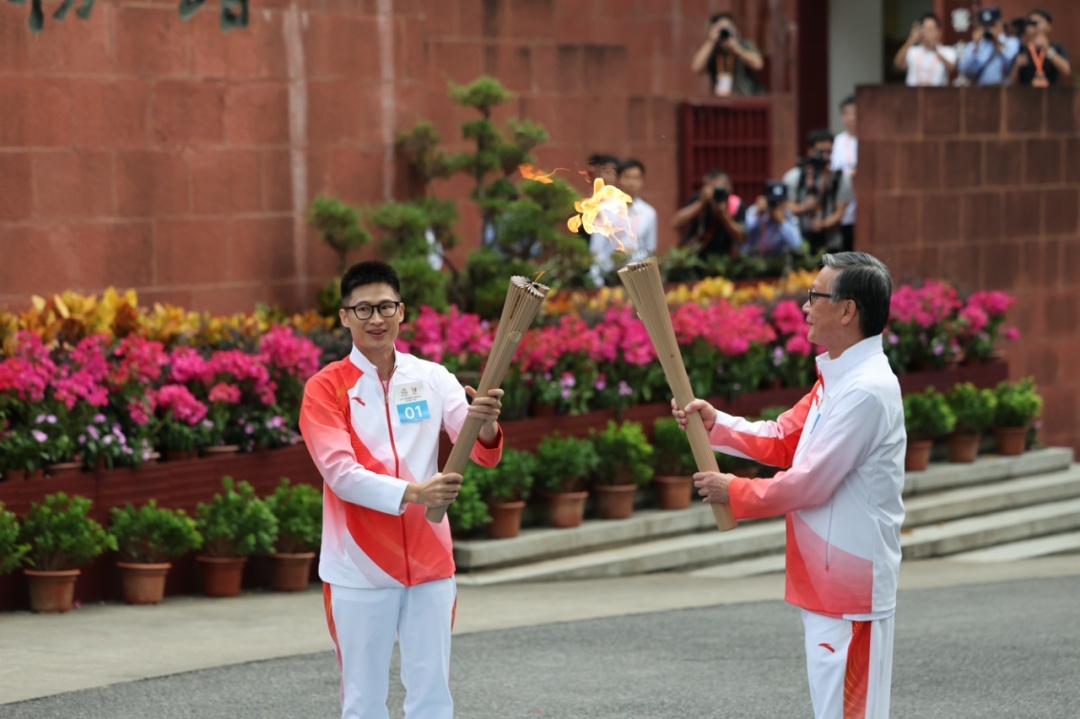 第一棒火炬手由广州大学城体育中心党总支书记杨景辉担任。他是2004年雅典奥运会跳水冠军,也是首位由广州市培养的跳水奥运会冠军(图源:广州日报)