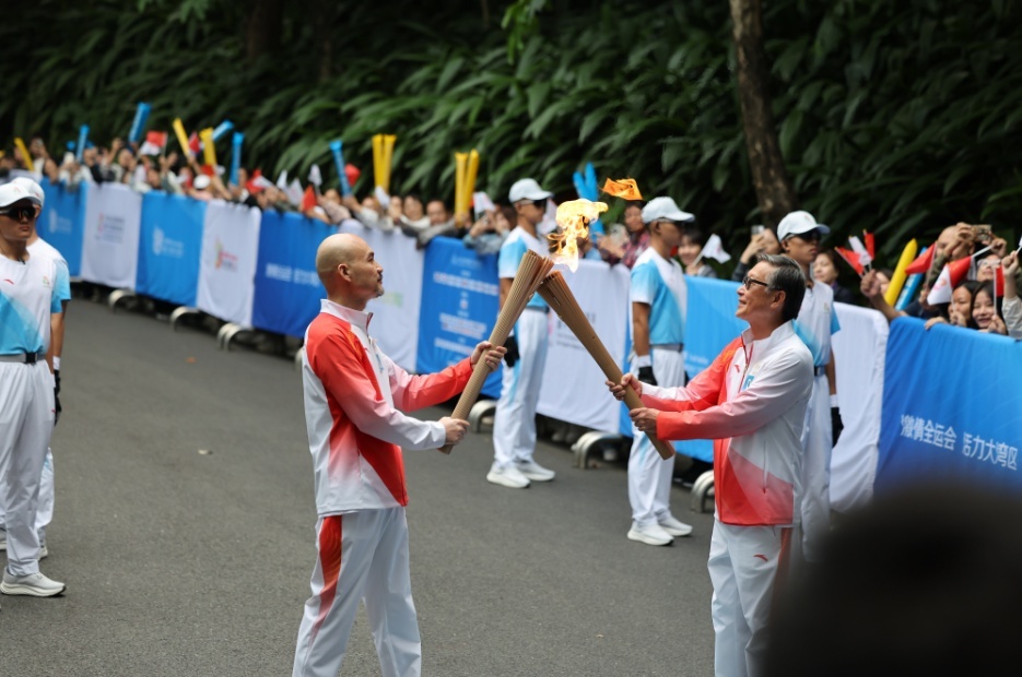 本届全运会火炬传递在香港、澳门、广州、深圳4个城市同步举行。11月2日上午9:50,广州站火炬传递正式展开。