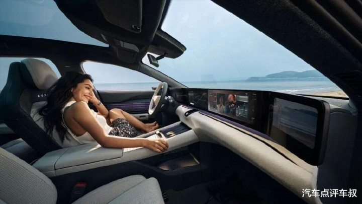 外观方面,前脸采用环形灯带环绕封闭式格栅,在夜间解锁车辆时会呈现“流水式”的动态迎宾效果,仪式感十足。车身侧面,呈现出宽扁低趴的姿态,而无框电吸门的设计为这款轿跑增添了高级感。同时,还配备隐藏式车门把手以及电子外后视镜等,科技感拉满。车尾,采用贯穿式尾灯组,环形光幕与车头呼应,灵感源自上海外滩建筑轮廓,内置动态光效。小鸭尾扰流板+熏黑扩散器,搭配72°大角度掀背尾门,兼顾美观与装载便利性。其长宽高分别为4881/1960/1479 mm,轴距为2950mm,这是中型车的大小却有着接近中大型车的轴距,在空间表现上突破传统轿跑局限。