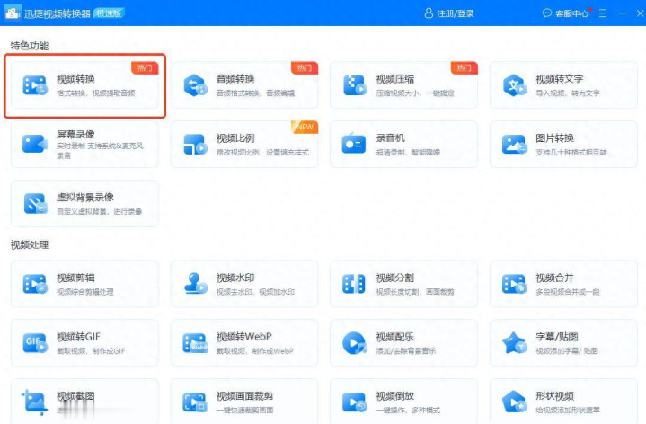 打开软件,在首页找到【视频转换】,导入多个需要转换的视频文件。