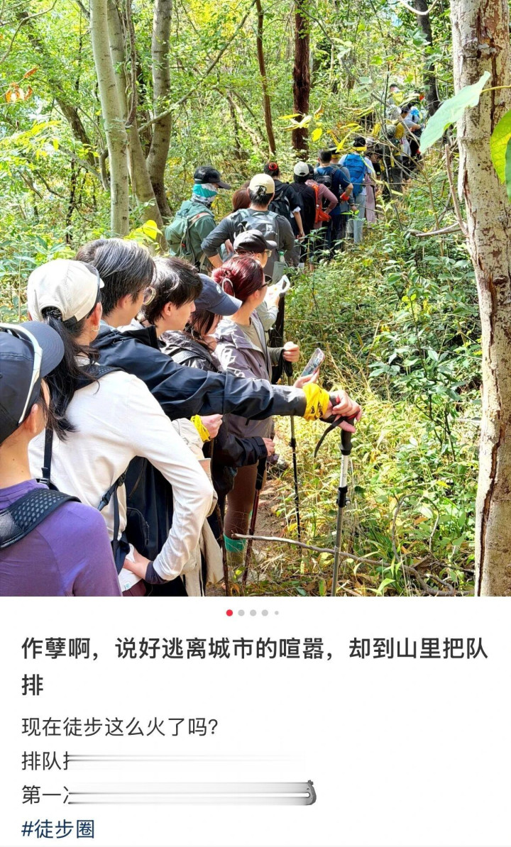 爬山,本应是一件对抗城市拥挤和快节奏的反“内卷”的事。但当成千上万的人抱着同样的目的涌向同一个山头时,人们逃离了城市的“卷”,却又在山里“卷”了起来。