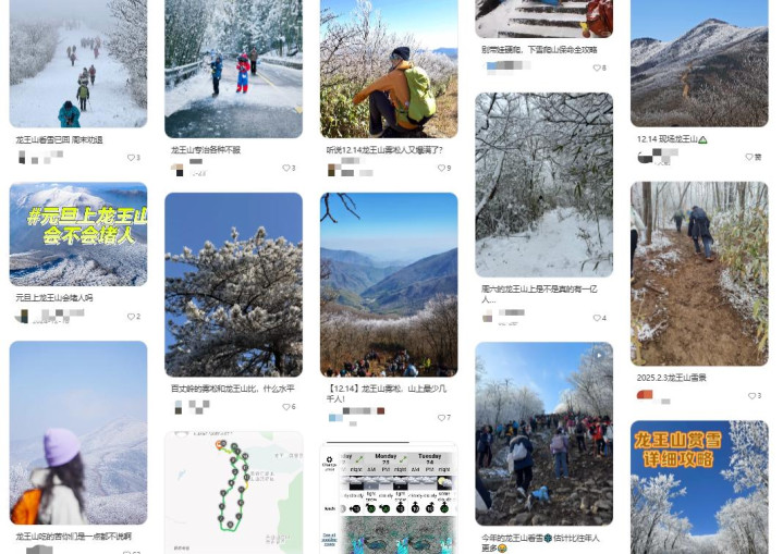 四明山的秋景、龙王山的雪景,在社交媒体上热度颇高。(图/小红书截图)