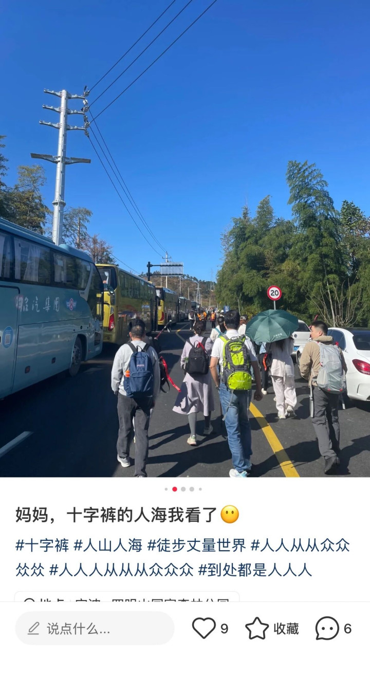 社交媒体上,常有对江浙地“挤山”的吐槽。(图/小红书截图)